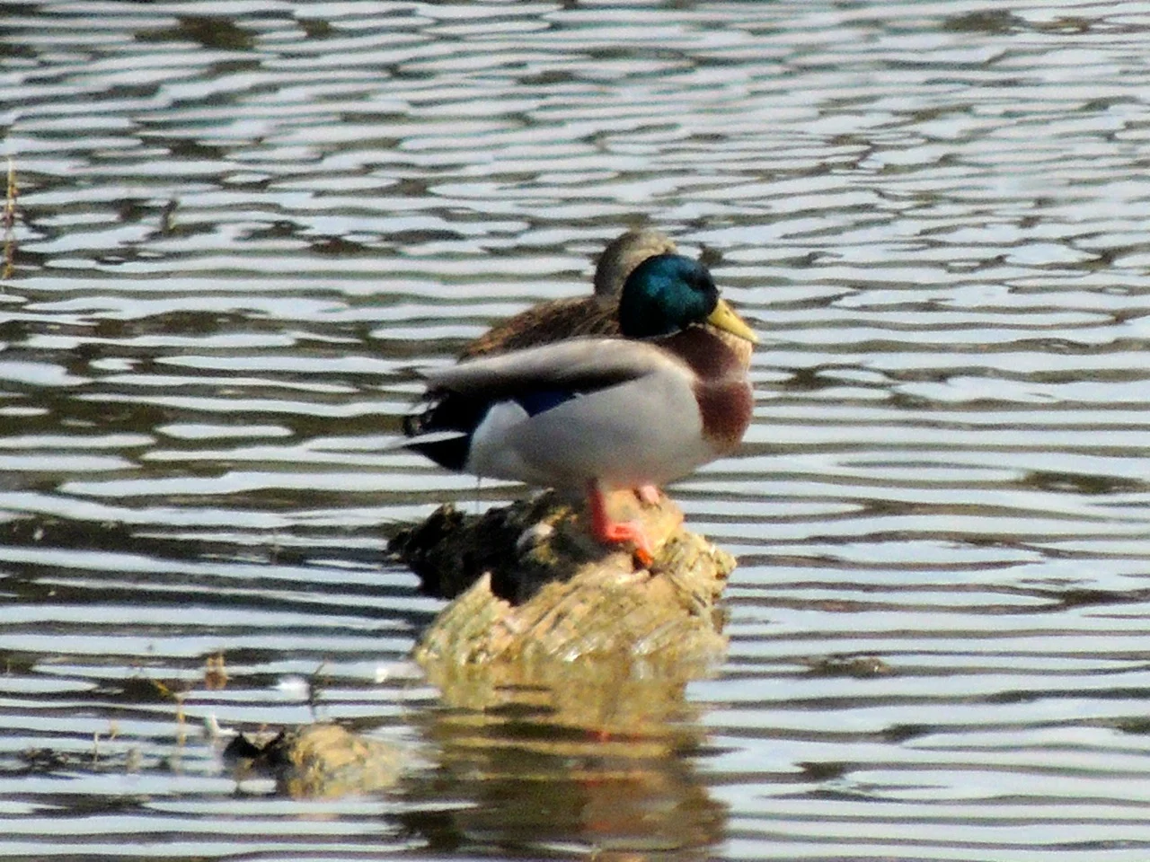 Aren't ducks supposed to love water? They always seem to be trying to avoid it. (Two photos.)