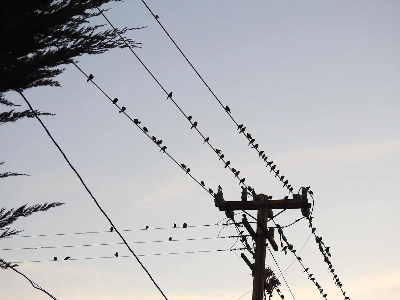 A video of the brewer's blackbirds doing morning up on the wires. So you can hear them the way I did.