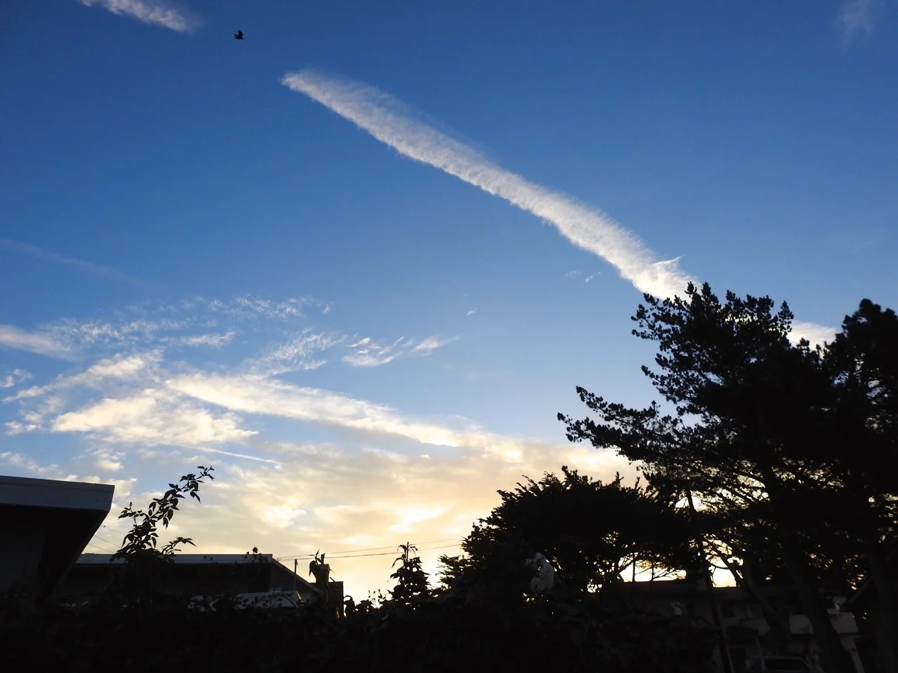 Now the question is... what did I catch? Upper left of the photo, where the jet trail breaks. Is that a faraway bird? Close butterfly?