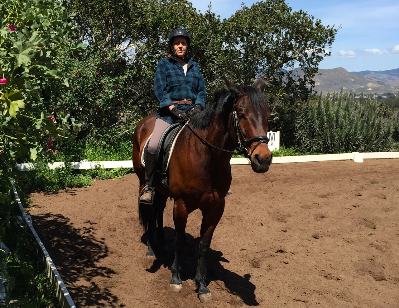 Our trainer/riding instructor Barbi Breen-Gurley took this photo of me looking pleased with my wonderful new horse, and my wonderful new horse looking decidedly relaxed. We had just had a good lesson.