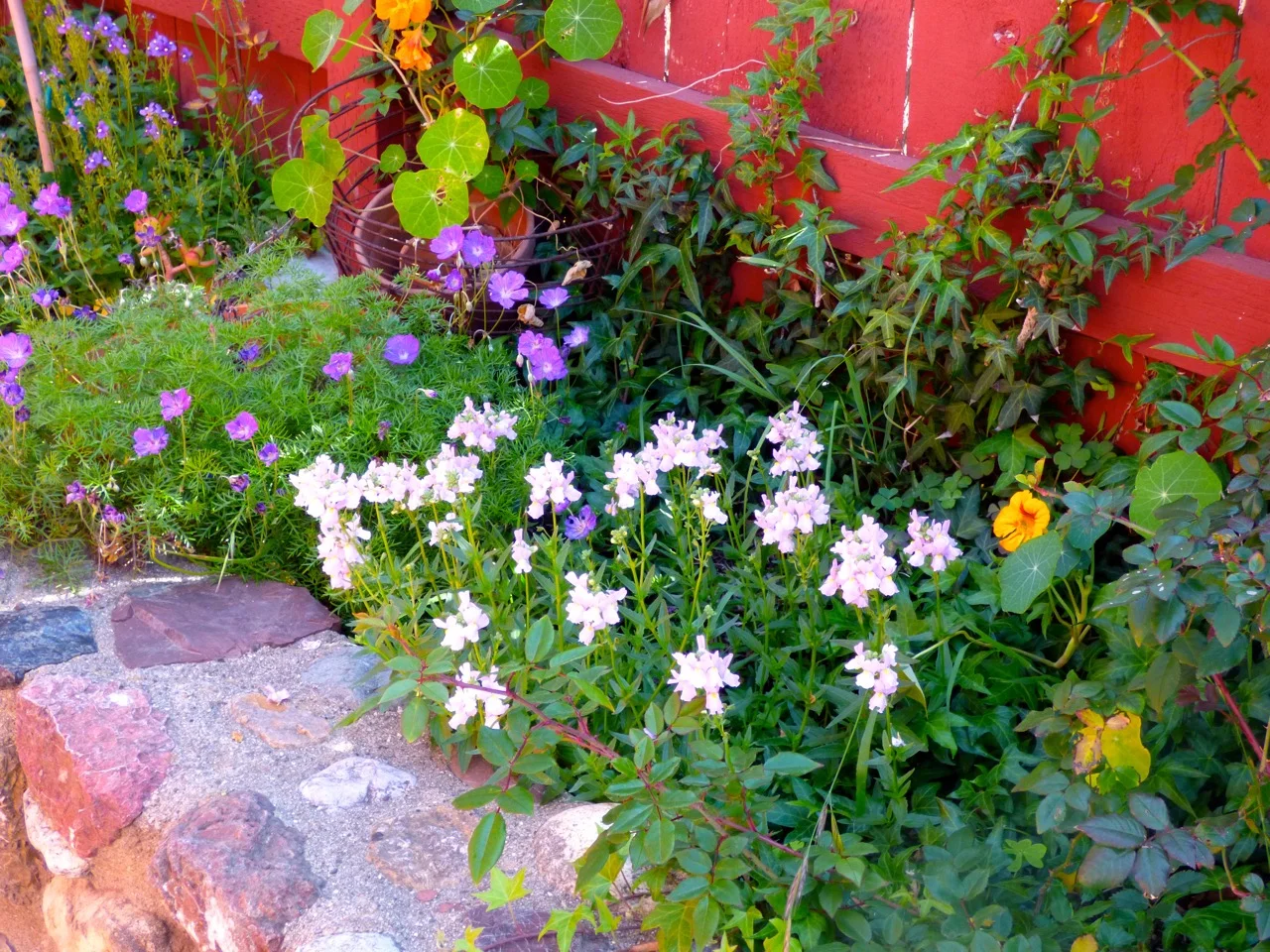 (Four photos.) To the best of my recollection I have never seen these tiny flowers, and I have no idea how they ended up in one of my raised planters. But they are welcome!