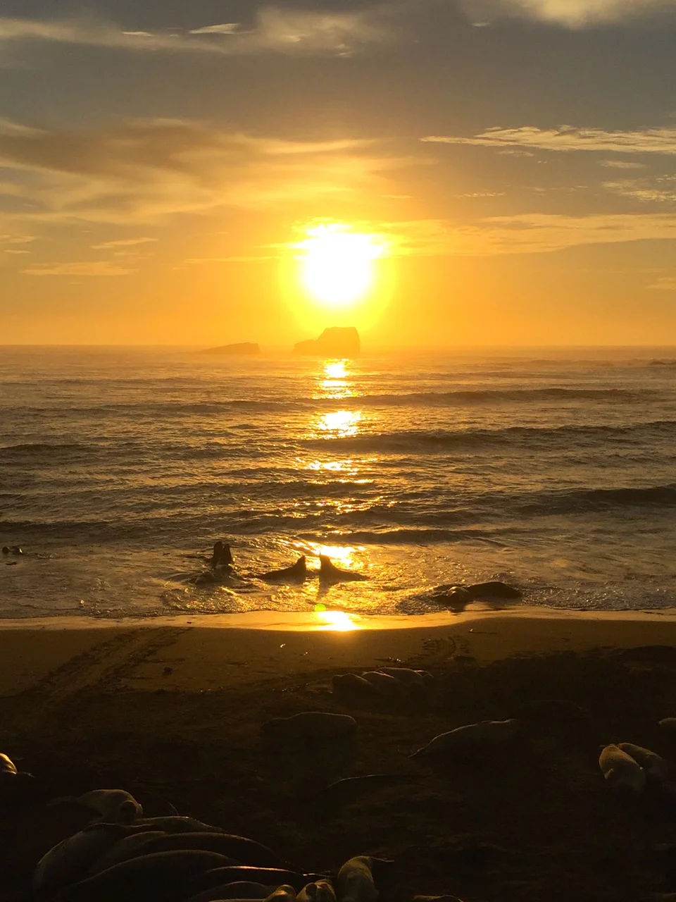 Cloud Painter sunset with elephant seals #DailyGratitude